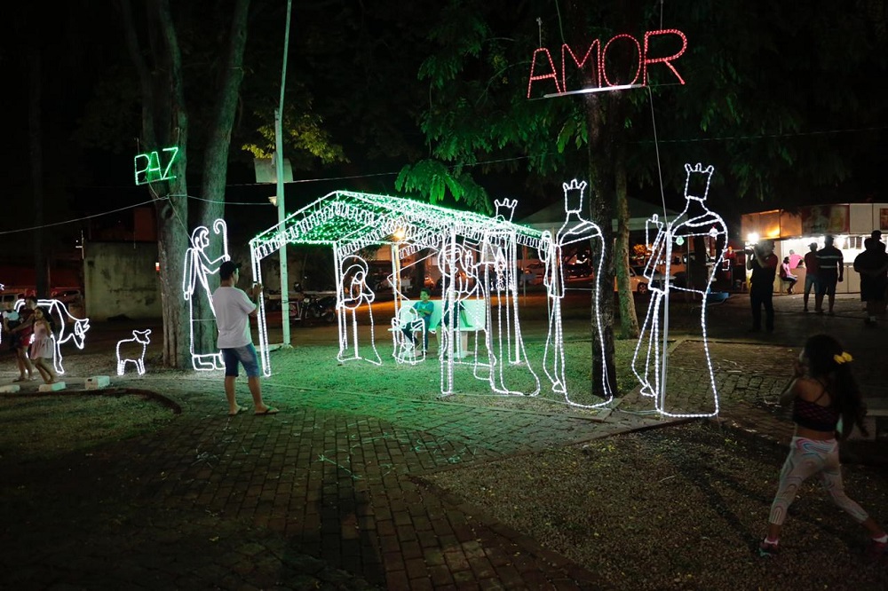 A ligação das luzes e a estreia da decoração natalina foi marcada com uma apresentação de coral de vozes infantis e adultas da igreja Sara Nossa Terra. Eles encantaram o público que esteve na praça Brasil para apreciar a decoração. Além de um parque de diversões para os pequenos, o município também fez a montagem de um presépio simbolizando o nascimento do menino Jesus na praça Brasil.