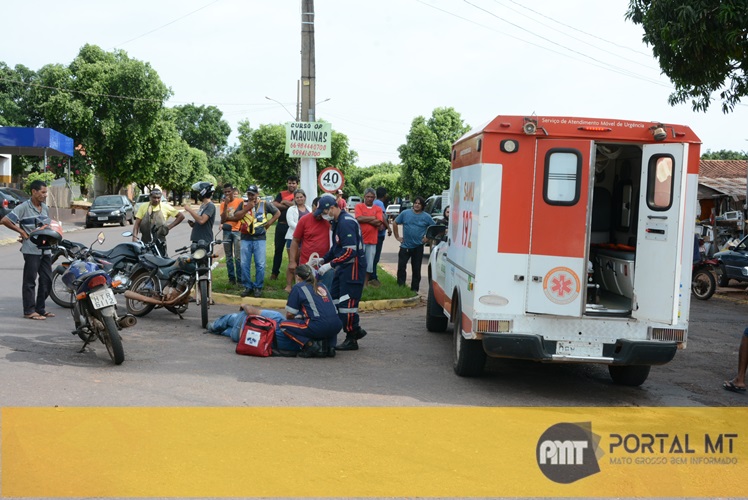 Motociclista tem fratura exposta após colisão no Bairro São Sebastião II