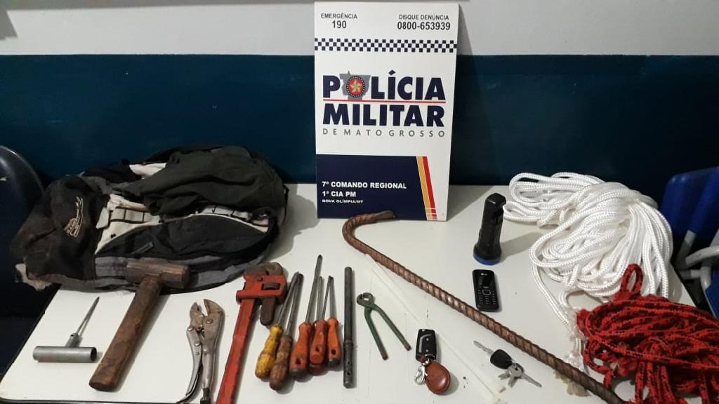 Policiais militares de Nova Olímpia (a 207 km de Cuiabá) apreenderam na noite desta terça-feira (04.09), uma caminhonete Hilux prata e ferramentas usadas em arrombamentos.