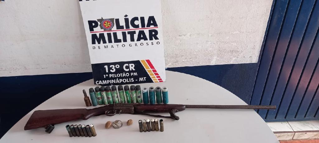 A Polícia Militar prendeu um homem de 71 anos por ameaça, violência doméstica e porte ilegal de arma de fogo, neste sábado (22.01), na cidade de Campinápolis. O suspeito utilizou uma espingarda para ameaçar a esposa após o pedido de separação do casal. A arma de fogo foi apreendida, assim como cartuchos da espingarda e recipientes de pólvora.