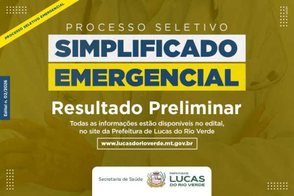 A Prefeitura de Lucas do Rio Verde divulgou na manhã desta segunda-feira (23), o resultado preliminar do Processo Seletivo Emergencial Simplificado, Edital n. 002/2026.