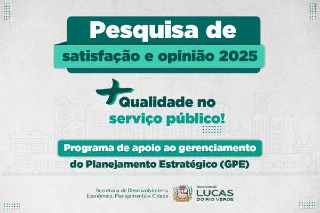 A Prefeitura de Lucas do Rio Verde reforça o convite à população para participar da pesquisa de opinião sobre os serviços públicos ofertados pela administração municipal, disponível desde 23 de dezembro de 2025 e prorrogada até a próxima segunda-feira (19), de forma on-line.