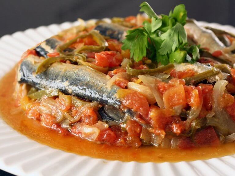 Sirva a sardinha e polvilhe a cebolinha picada.