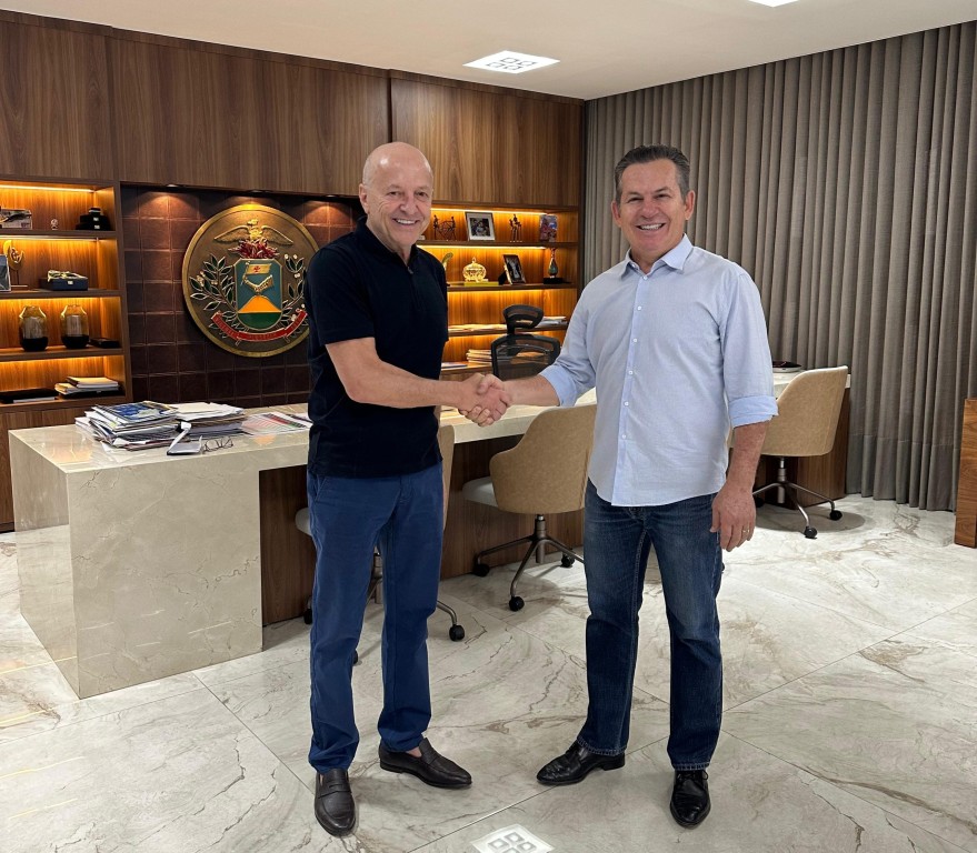 O governador Mauro Mendes transmite o cargo para o vice-governador Otaviano Pivetta a partir deste sábado (23.8).